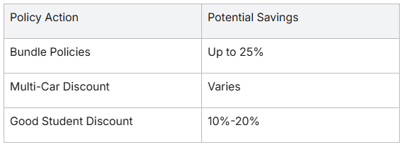 Multi-Car Discounts: If your household has multiple vehicles, you can qualify for a multi-car discount. Ensure your teen's car is included in this arrangement to save on insurance costs.